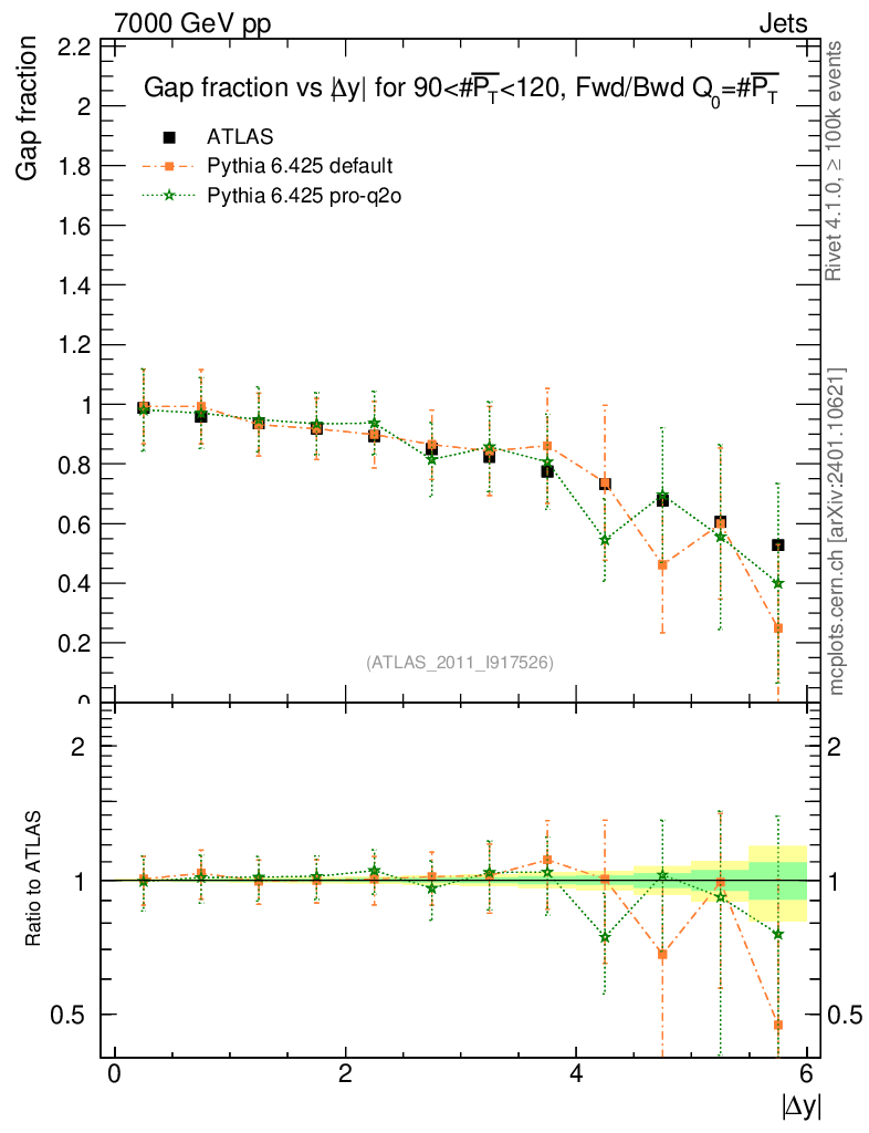 Jets : Jets + Veto : Gap fraction vs Δy (FB)