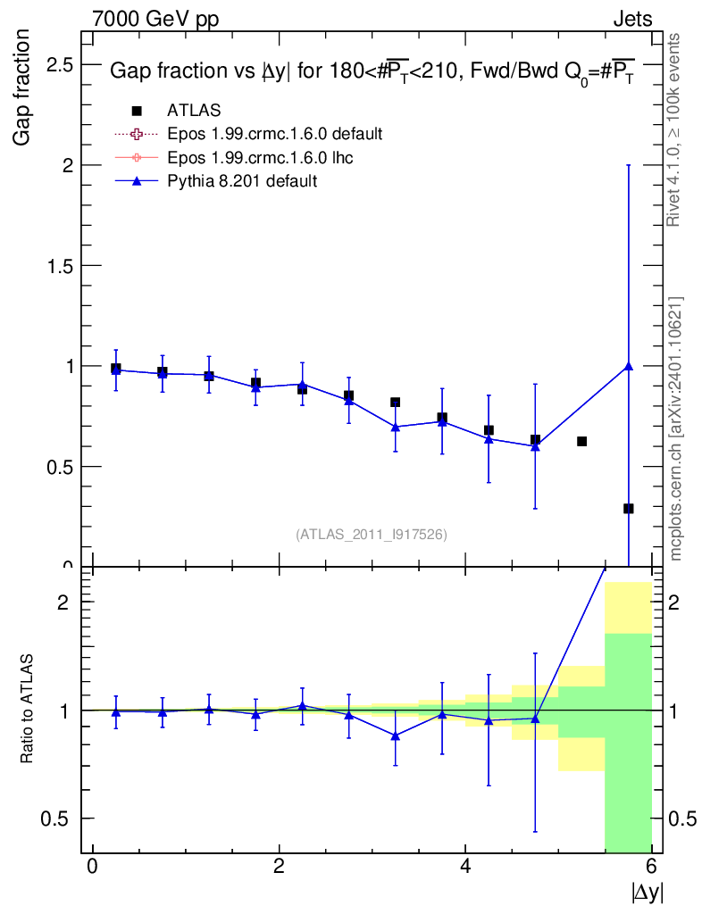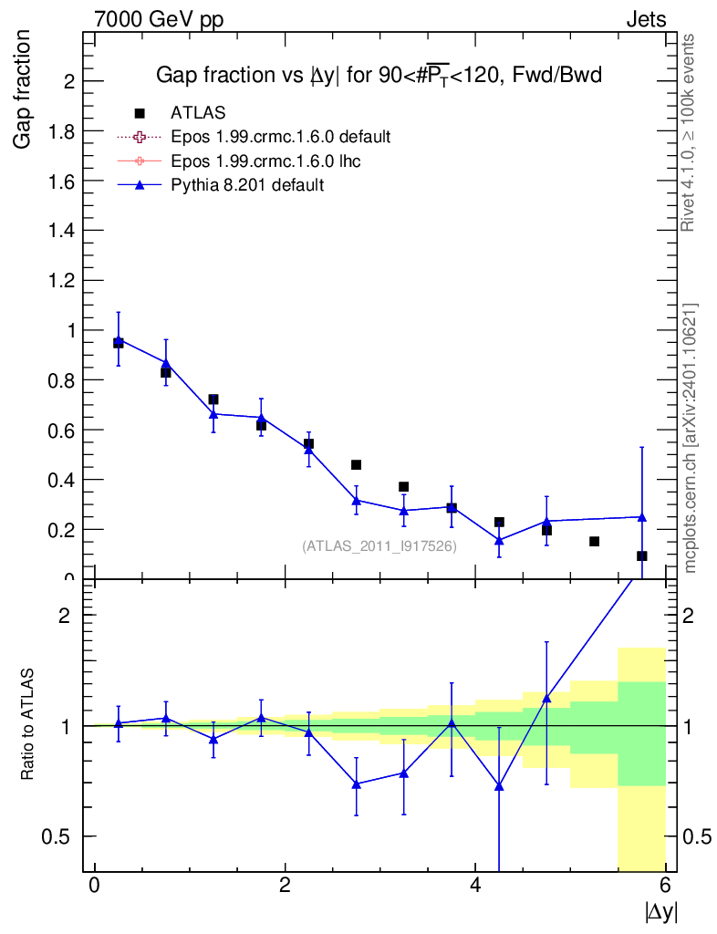 Jets : Jets + Veto : Gap fraction vs Δy (FB)