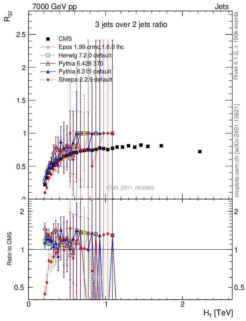 Jets : Jet Multiplicities : R32 vs HT