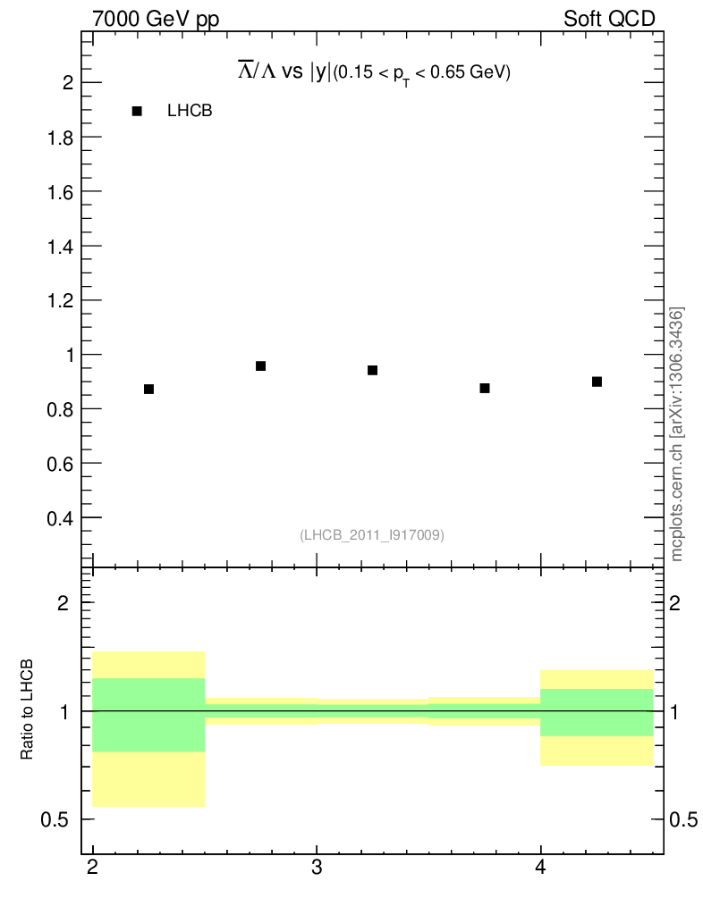 Soft QCD (inelastic) : Identified Particles : Ratios : Λbar/Λ vs |y|