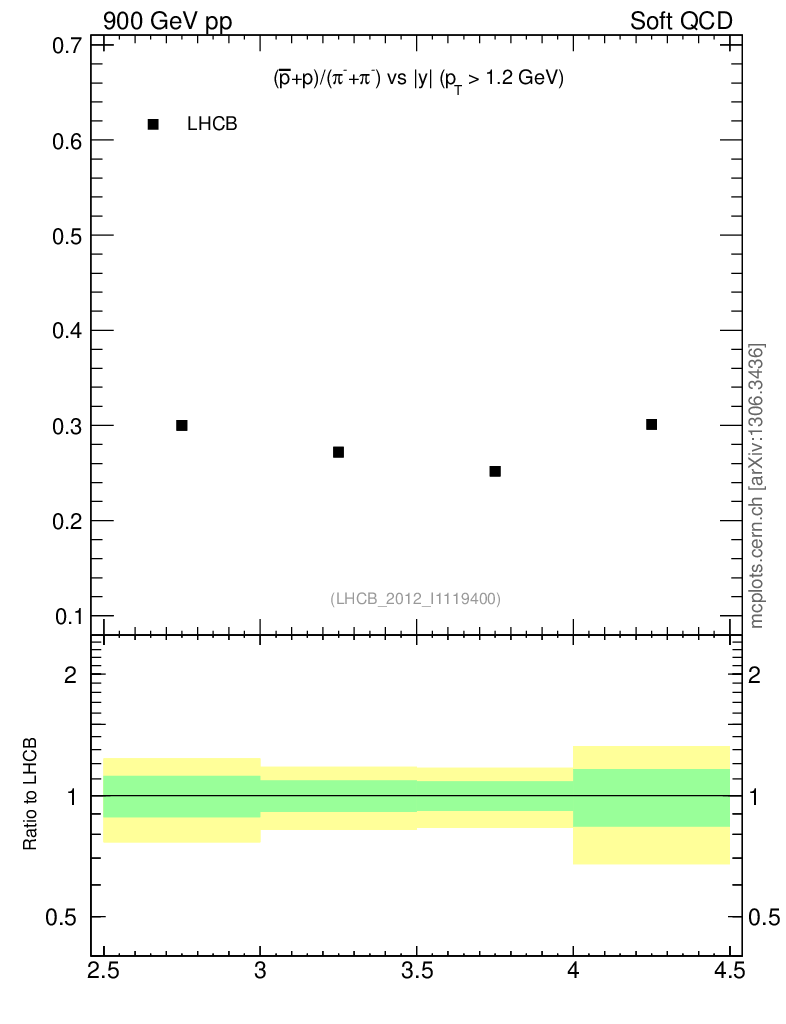 Soft QCD (inelastic) : Identified Particles : Ratios : (pbar+p)/(π-+π+) vs |y|