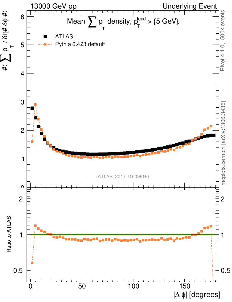 Underlying Event : Δφ distributions : Σ(pT) vs Δφ