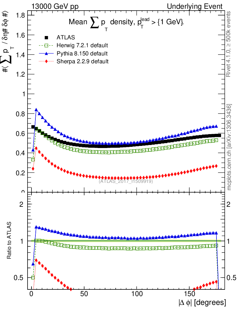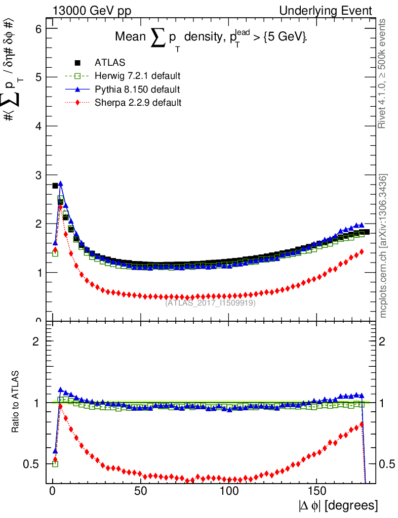Plot of sumpt-vs-dphi in 13000 GeV pp collisions