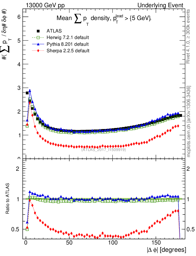 Plot of sumpt-vs-dphi in 13000 GeV pp collisions