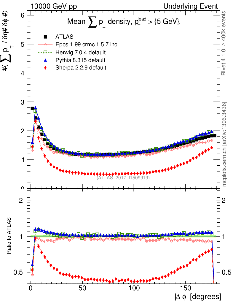 Underlying Event : Δφ distributions : Σ(pT) vs Δφ