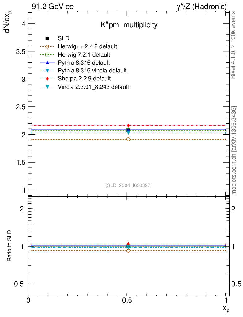 ee : γ*/Z (hadronic) : Identified Particles : K multiplicity