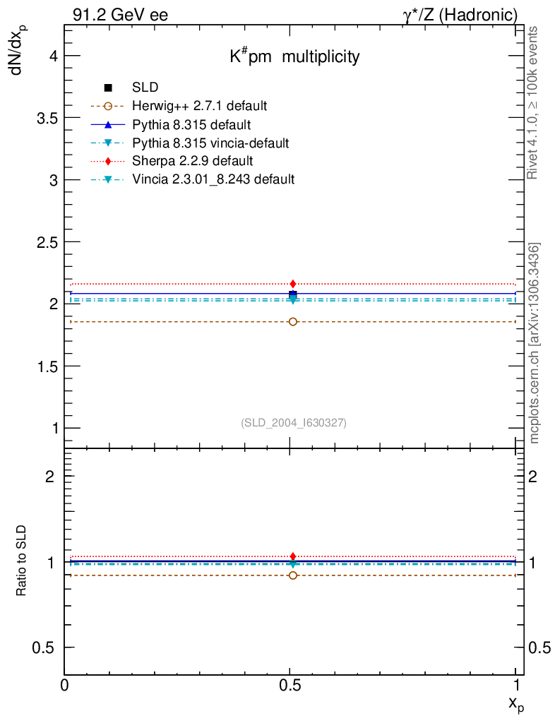 ee : γ*/Z (hadronic) : Identified Particles : K multiplicity