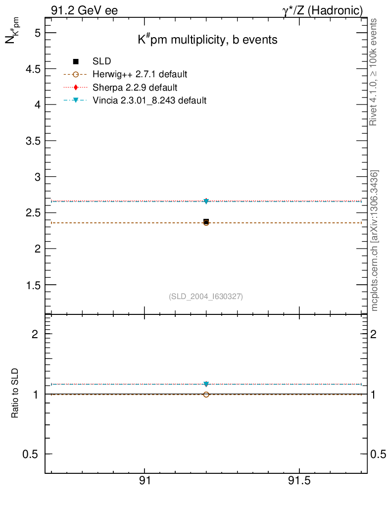 ee : γ*/Z (hadronic) : Identified Particles : K multiplicity