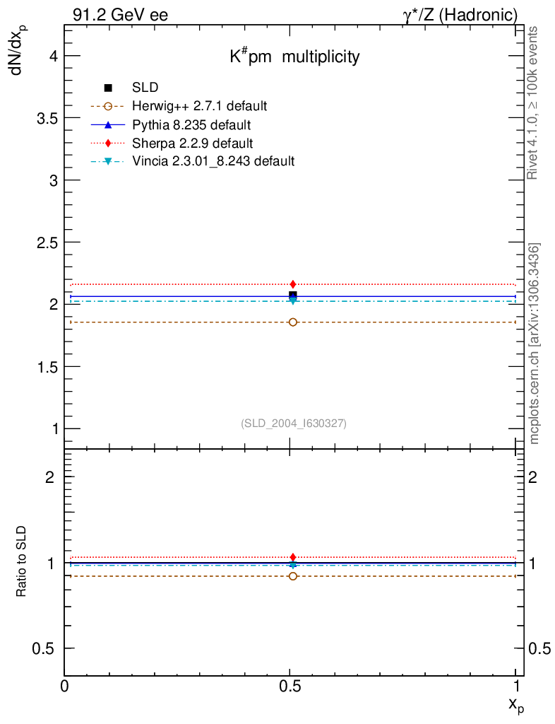 ee : γ*/Z (hadronic) : Identified Particles : K multiplicity