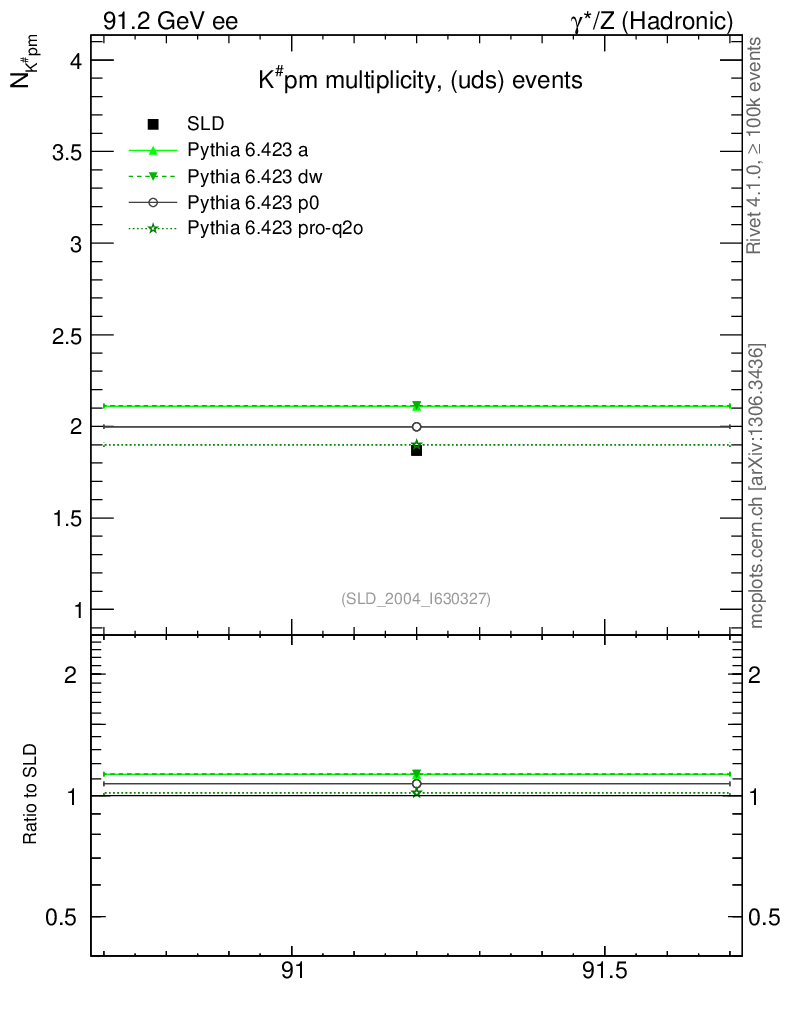 ee : γ*/Z (hadronic) : Identified Particles : K multiplicity