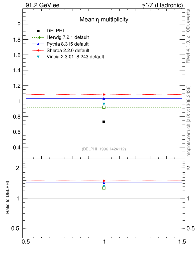 ee : γ*/Z (hadronic) : Identified Particles : η multiplicity