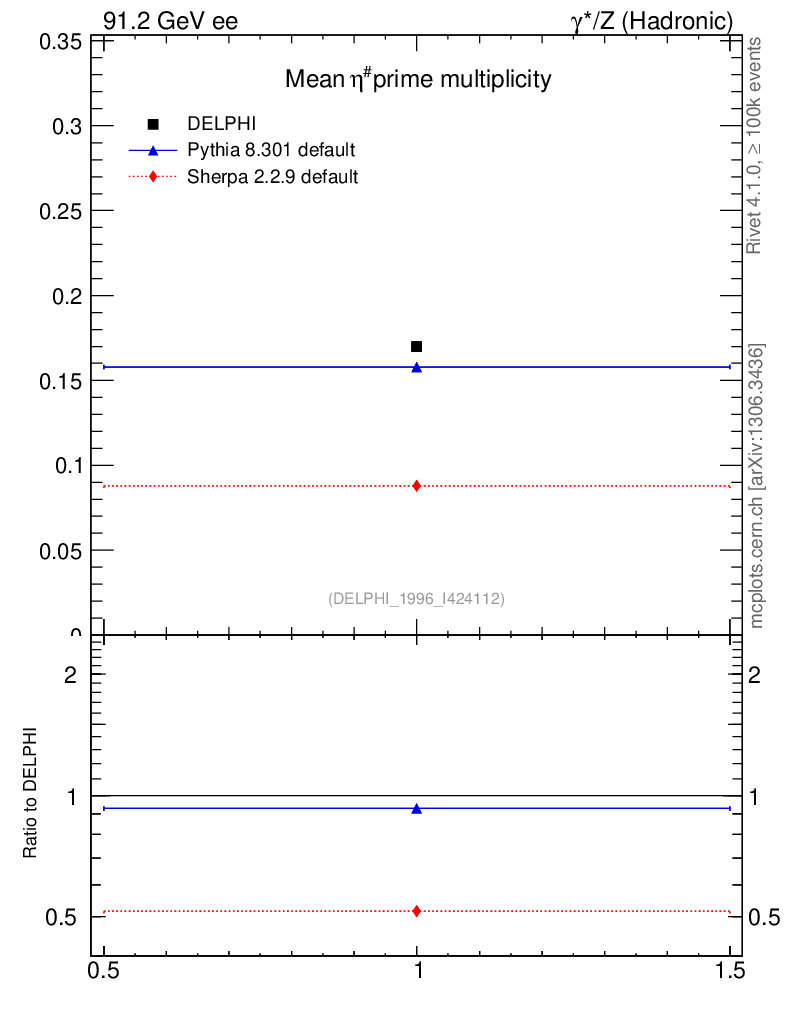 ee : γ*/Z (hadronic) : Identified Particles : η' multiplicity