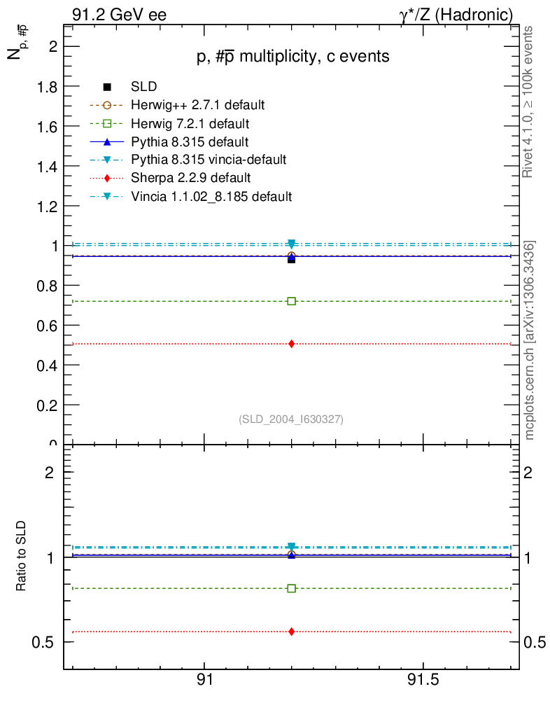 ee : γ*/Z (hadronic) : Identified Particles : p multiplicity