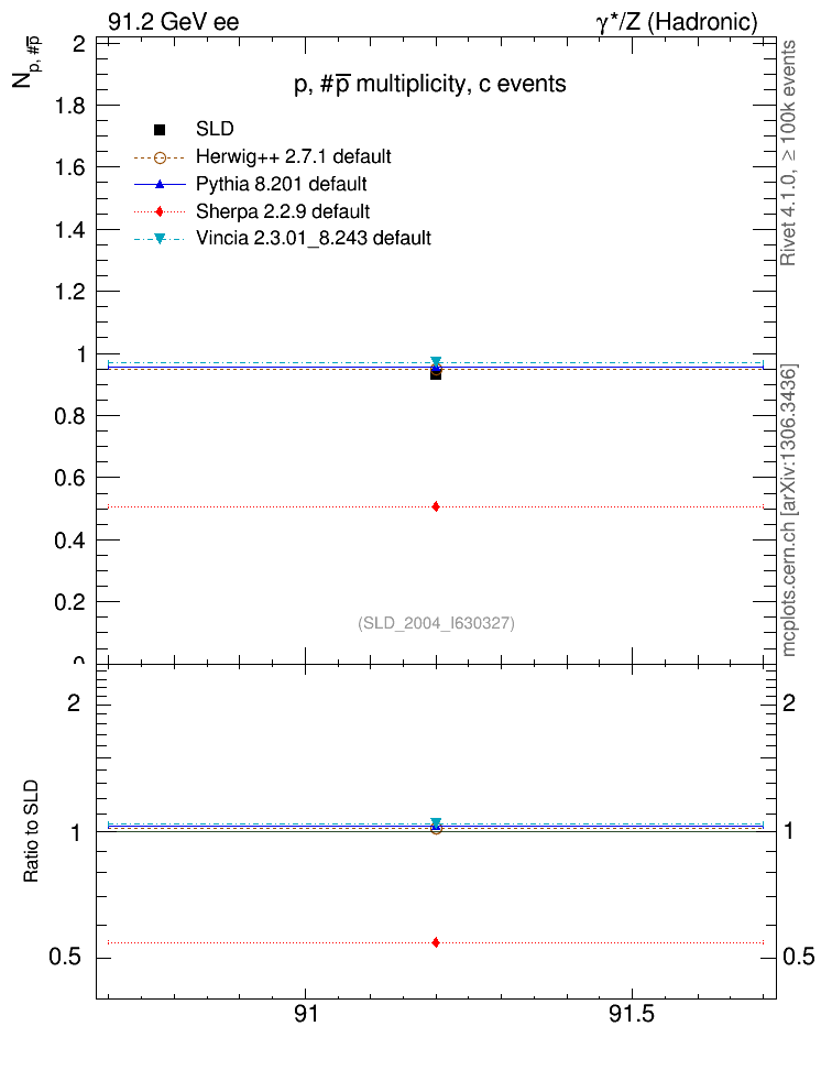 ee : γ*/Z (hadronic) : Identified Particles : p multiplicity