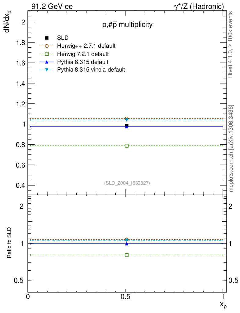 ee : γ*/Z (hadronic) : Identified Particles : p multiplicity