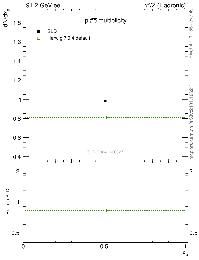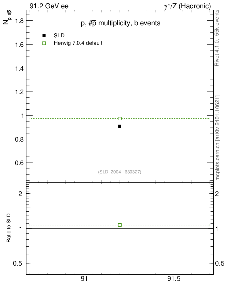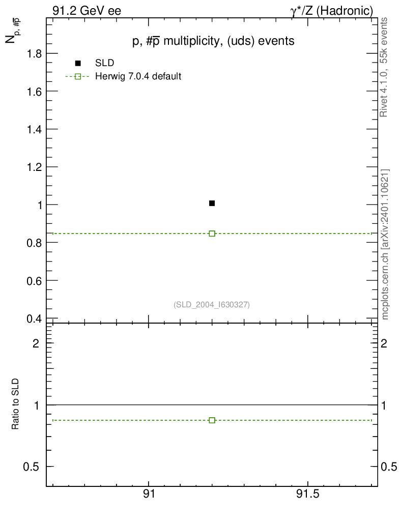 ee : γ*/Z (hadronic) : Identified Particles : p multiplicity