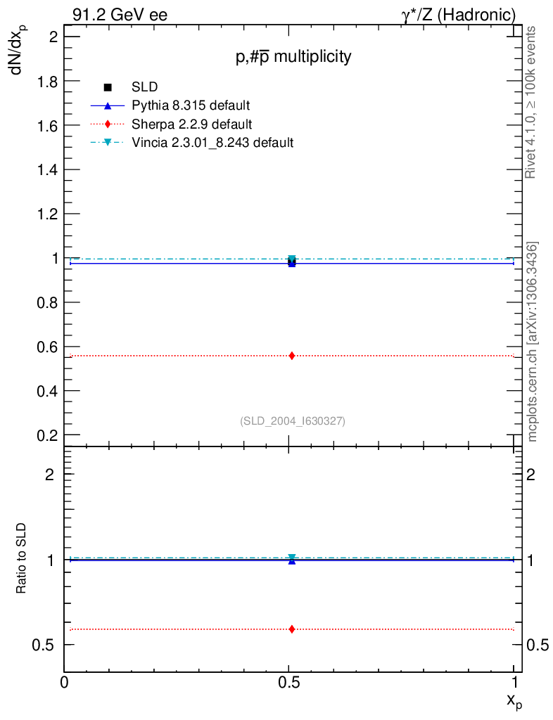 ee : γ*/Z (hadronic) : Identified Particles : p multiplicity