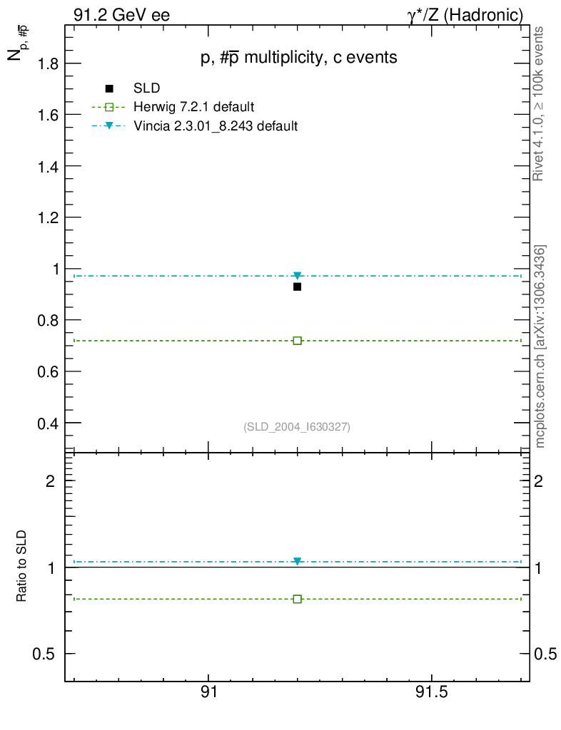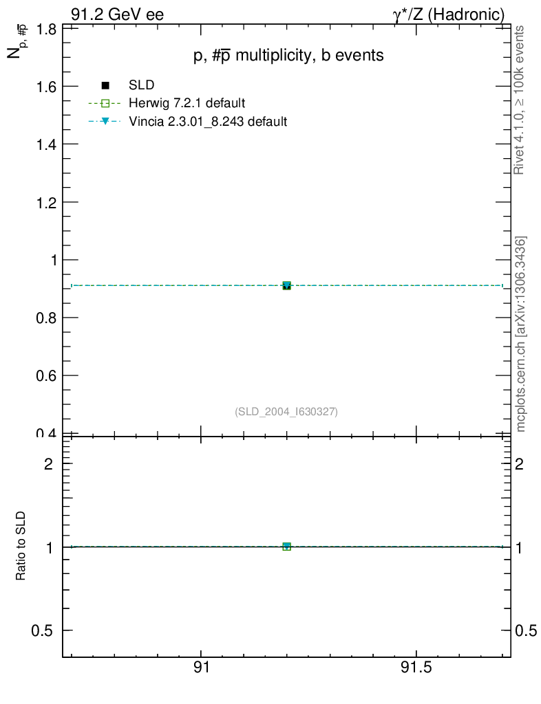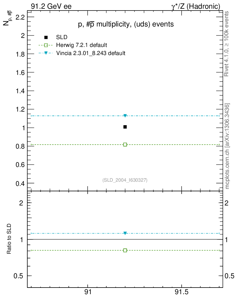 ee : γ*/Z (hadronic) : Identified Particles : p multiplicity