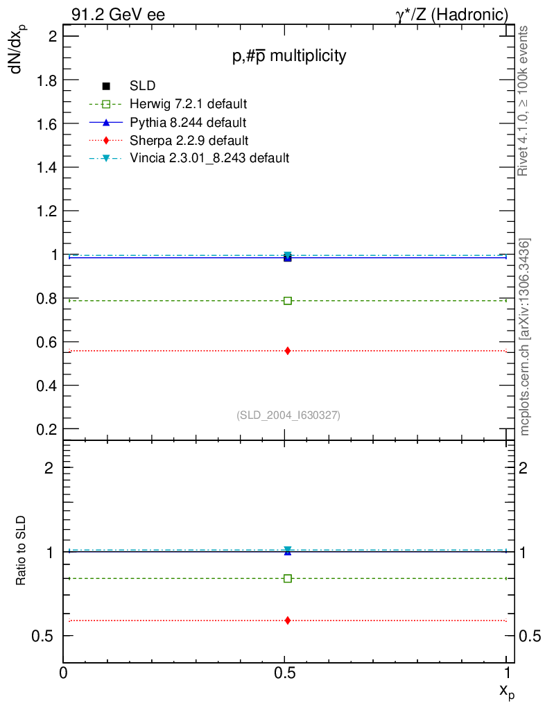 ee : γ*/Z (hadronic) : Identified Particles : p multiplicity