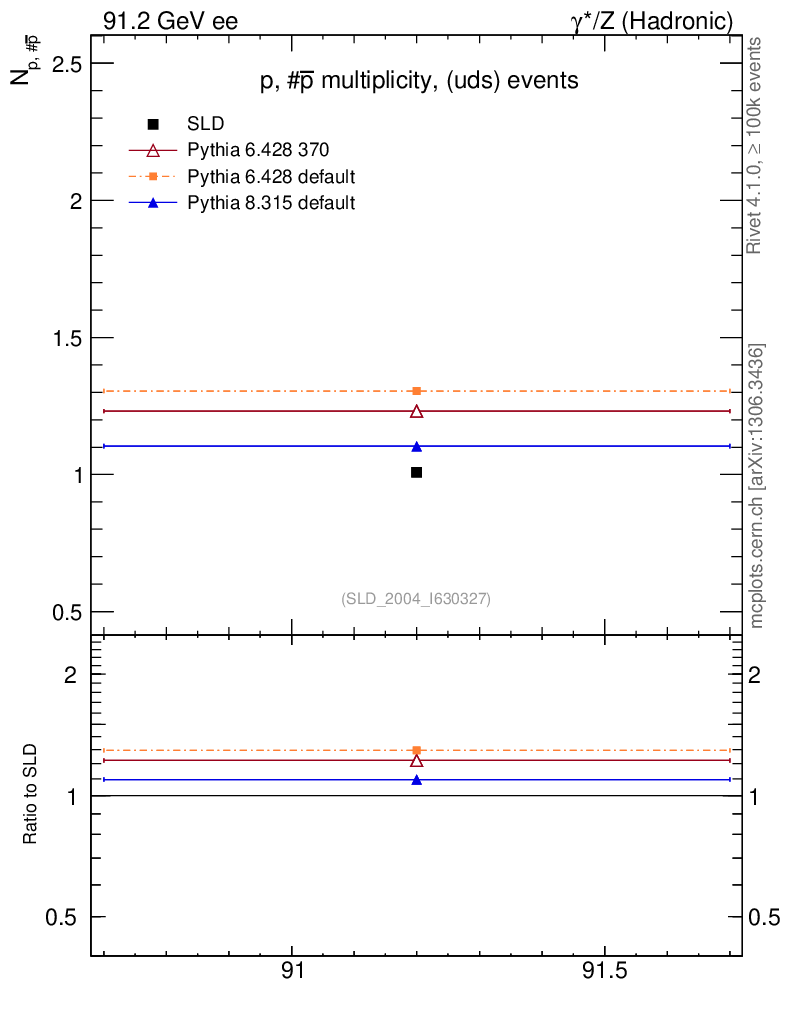 ee : γ*/Z (hadronic) : Identified Particles : p multiplicity