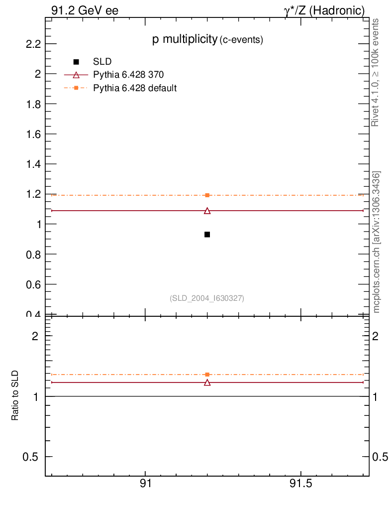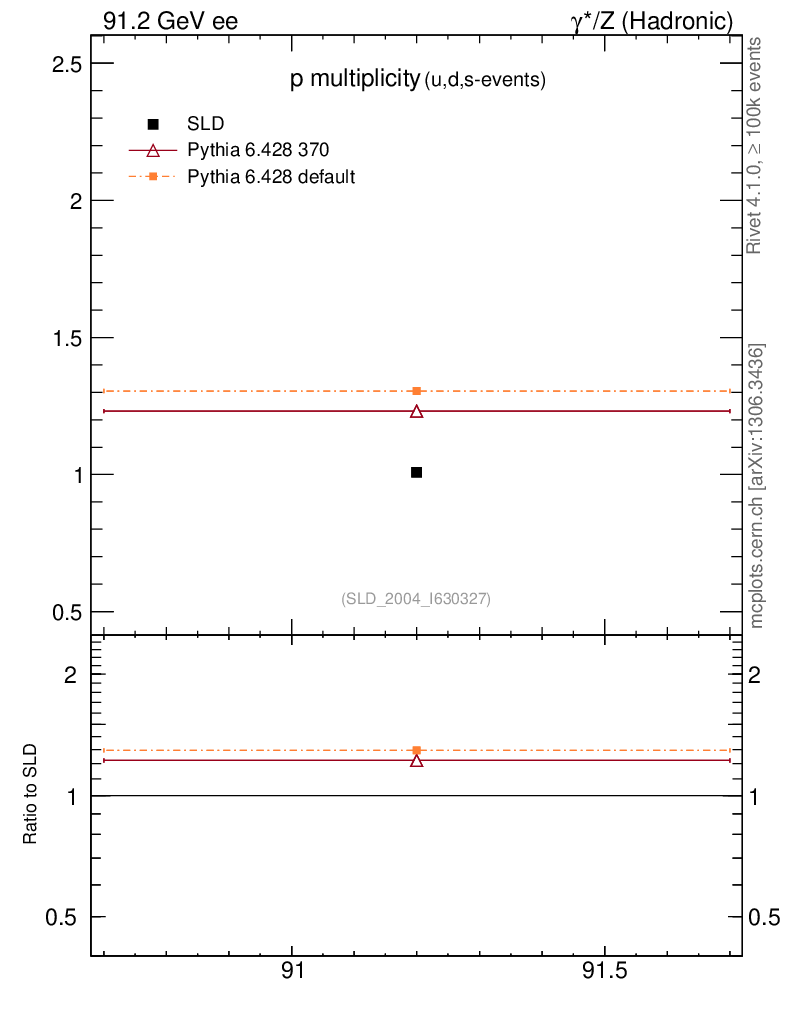 ee : γ*/Z (hadronic) : Identified Particles : p multiplicity