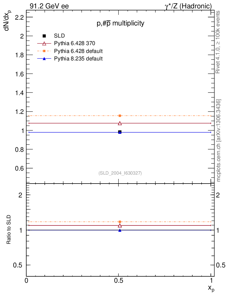 ee : γ*/Z (hadronic) : Identified Particles : p multiplicity