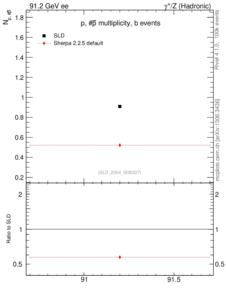 ee : γ*/Z (hadronic) : Identified Particles : p multiplicity