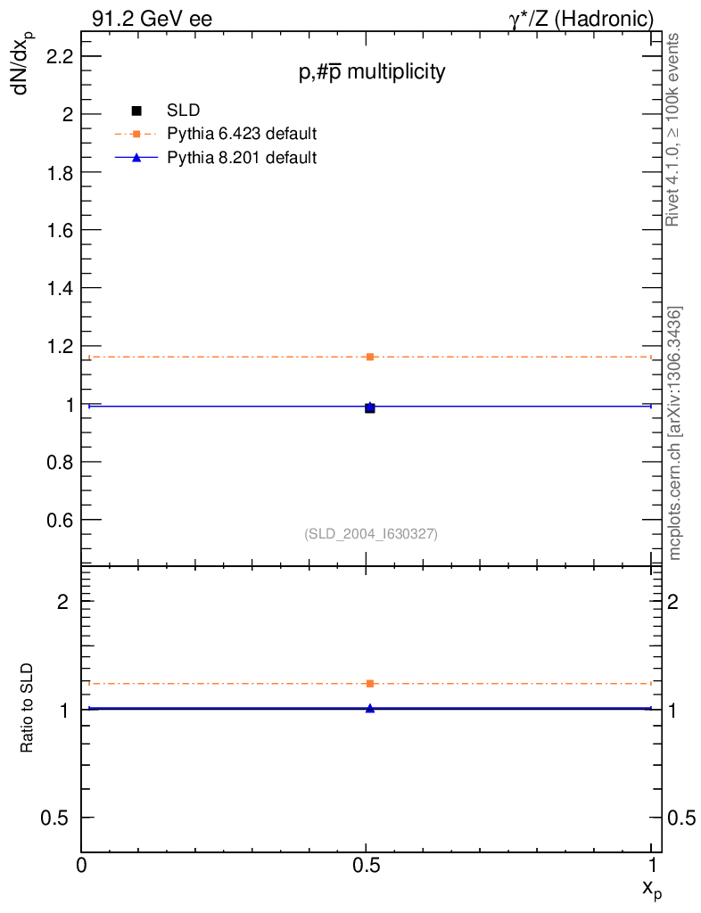 ee : γ*/Z (hadronic) : Identified Particles : p multiplicity