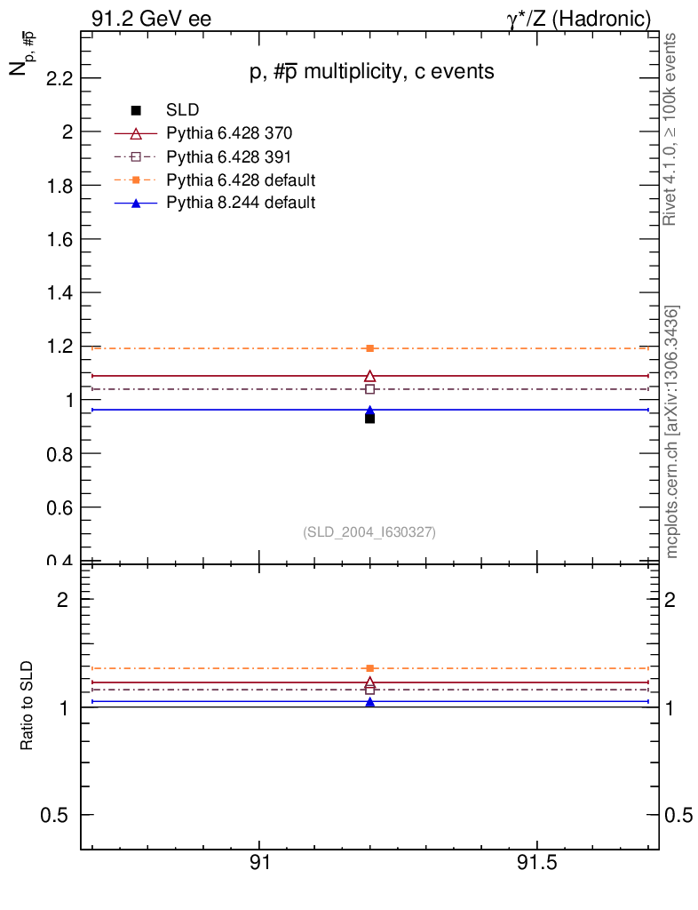 ee : γ*/Z (hadronic) : Identified Particles : p multiplicity