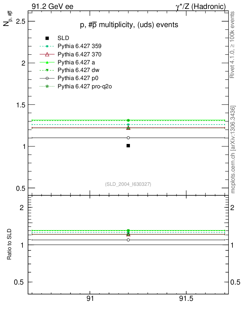 ee : γ*/Z (hadronic) : Identified Particles : p multiplicity