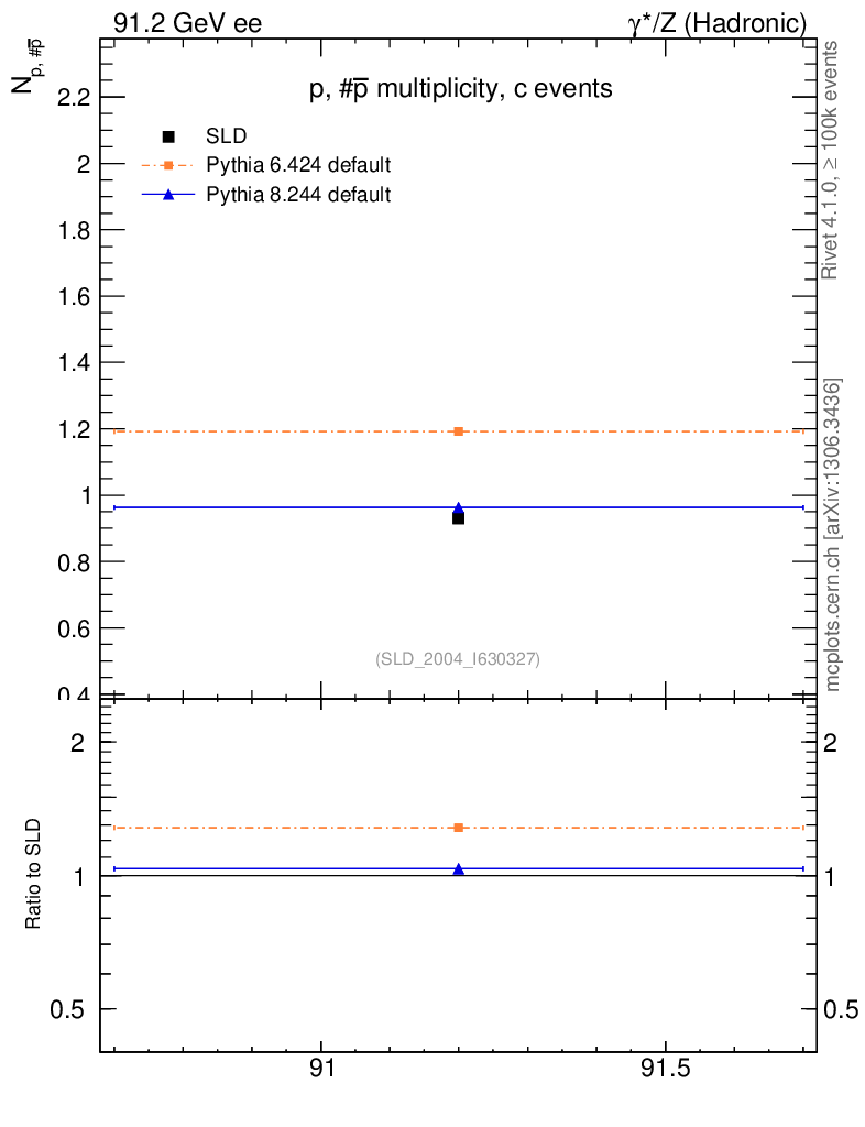 ee : γ*/Z (hadronic) : Identified Particles : p multiplicity