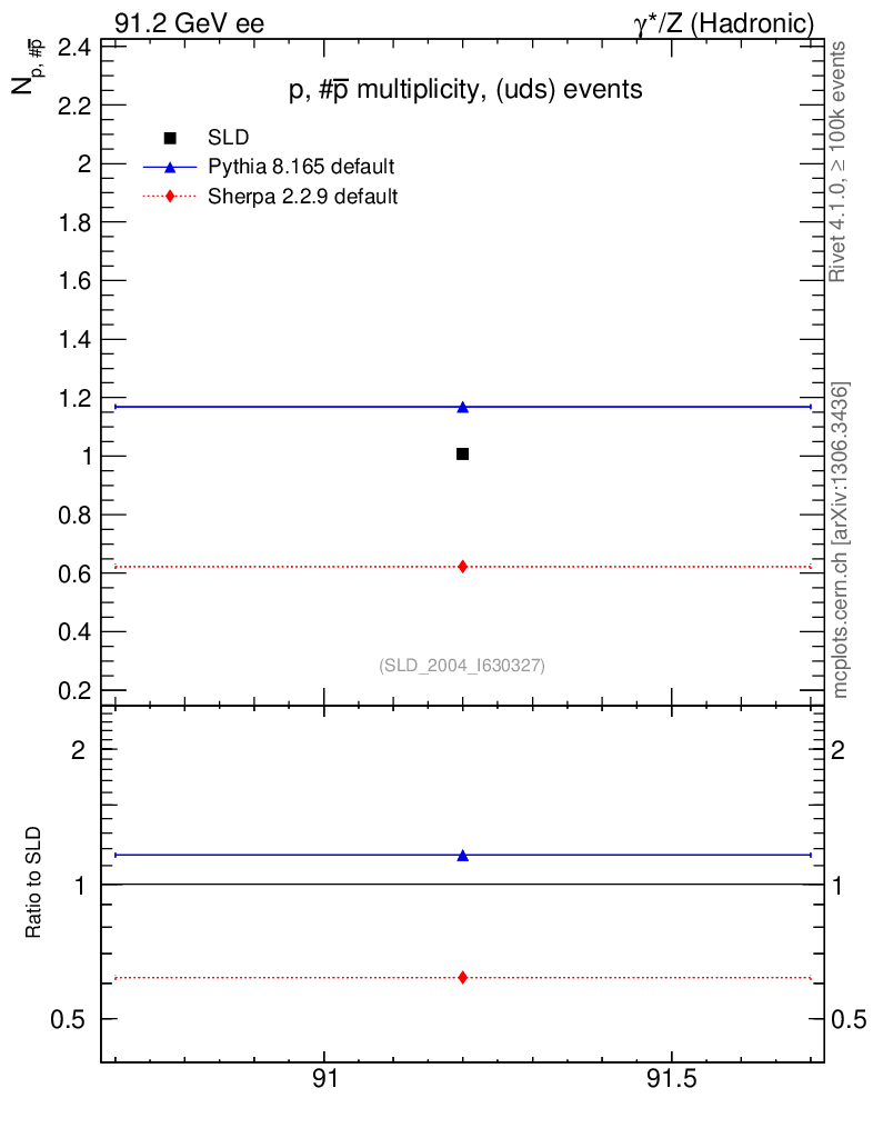 ee : γ*/Z (hadronic) : Identified Particles : p multiplicity