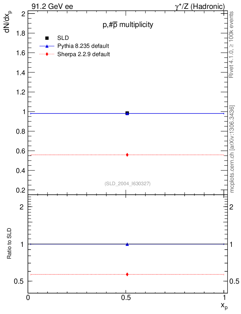 ee : γ*/Z (hadronic) : Identified Particles : p multiplicity