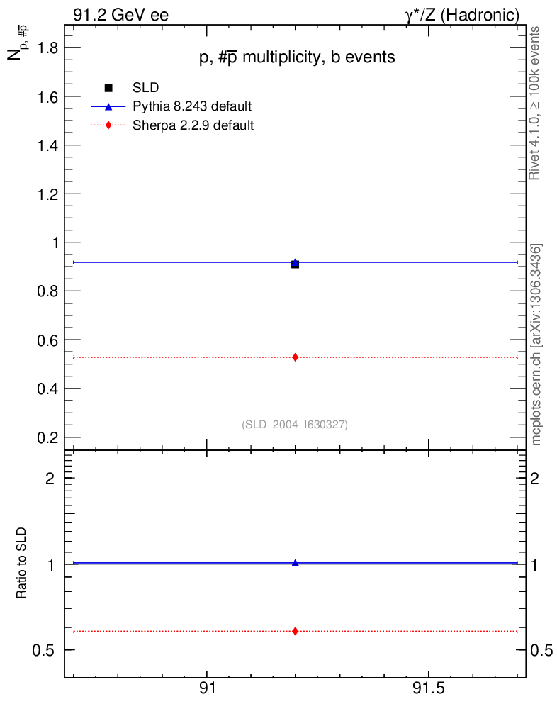 ee : γ*/Z (hadronic) : Identified Particles : p multiplicity