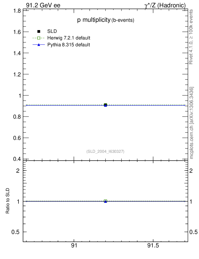 ee : γ*/Z (hadronic) : Identified Particles : p multiplicity
