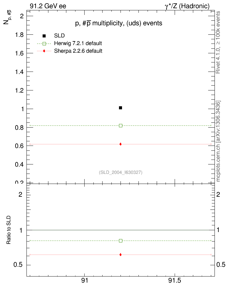 ee : γ*/Z (hadronic) : Identified Particles : p multiplicity