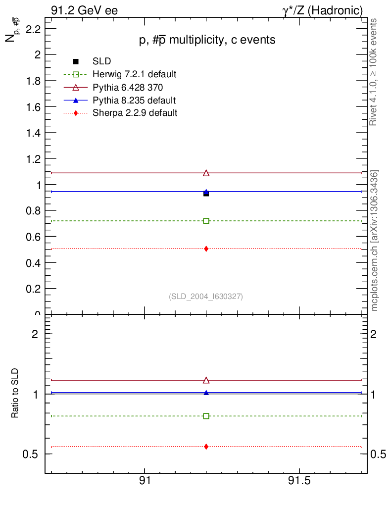ee : γ*/Z (hadronic) : Identified Particles : p multiplicity