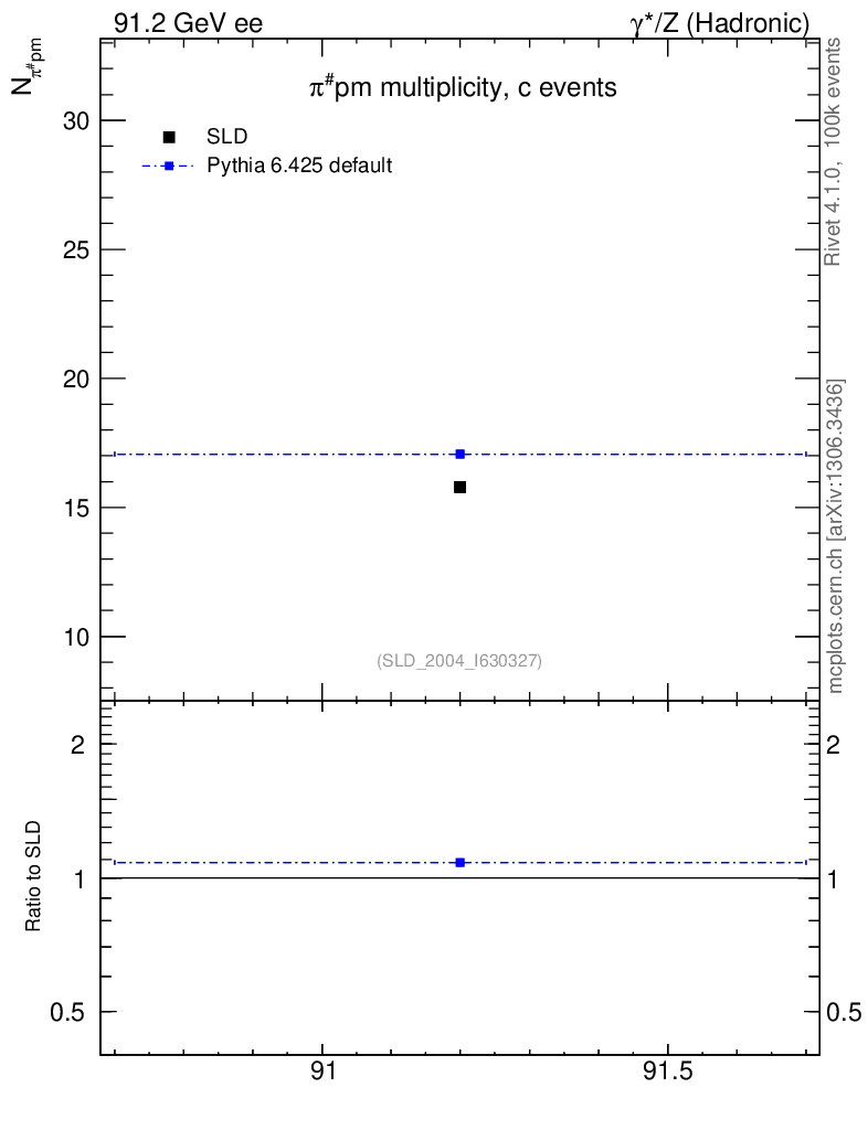 ee : γ*/Z (hadronic) : Identified Particles : π multiplicity