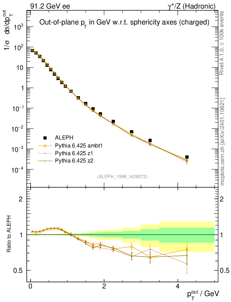 ee : γ*/Z (hadronic) : Charged Particles : pTout (Sph)