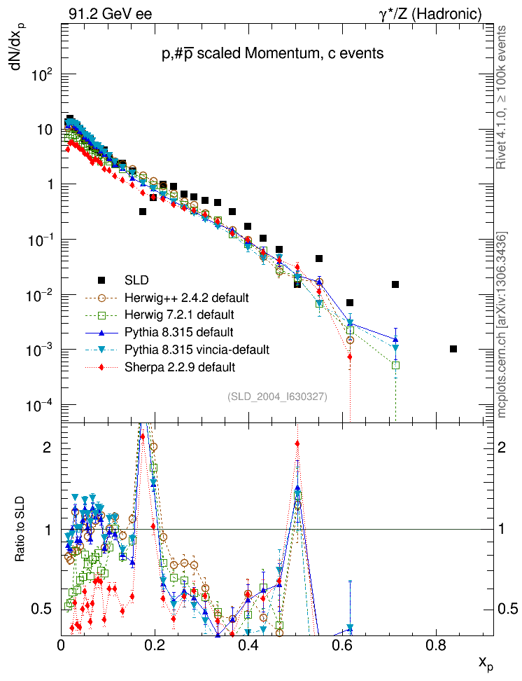 ee : γ*/Z (hadronic) : Identified Particles : p spectrum