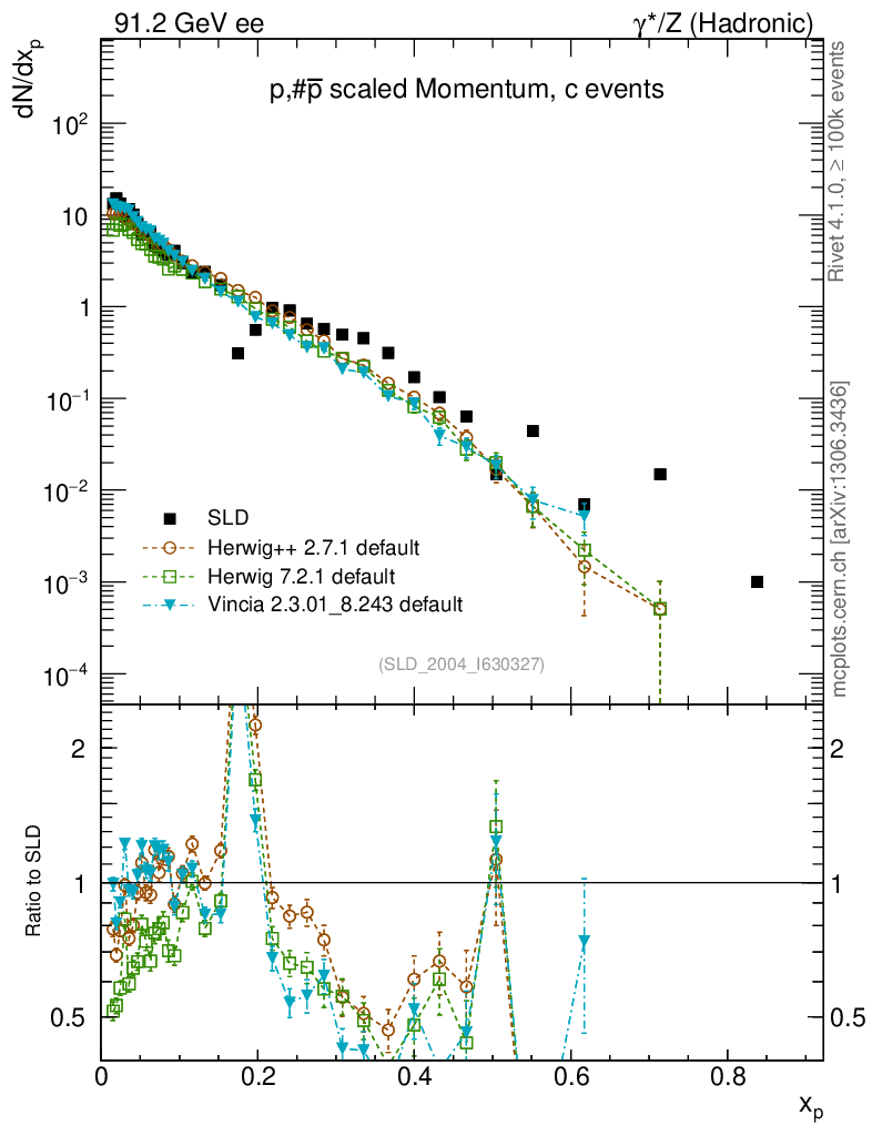 ee : γ*/Z (hadronic) : Identified Particles : p spectrum