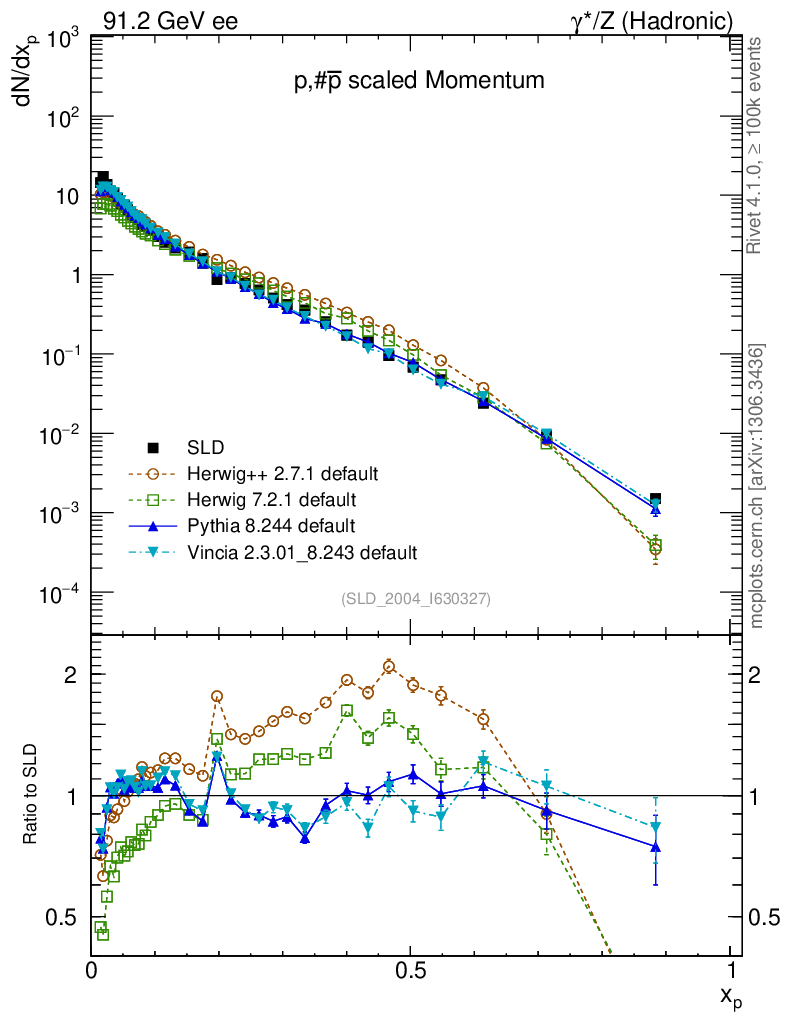 ee : γ*/Z (hadronic) : Identified Particles : p spectrum