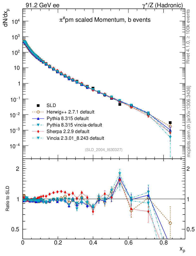 ee : γ*/Z (hadronic) : Identified Particles : π spectrum