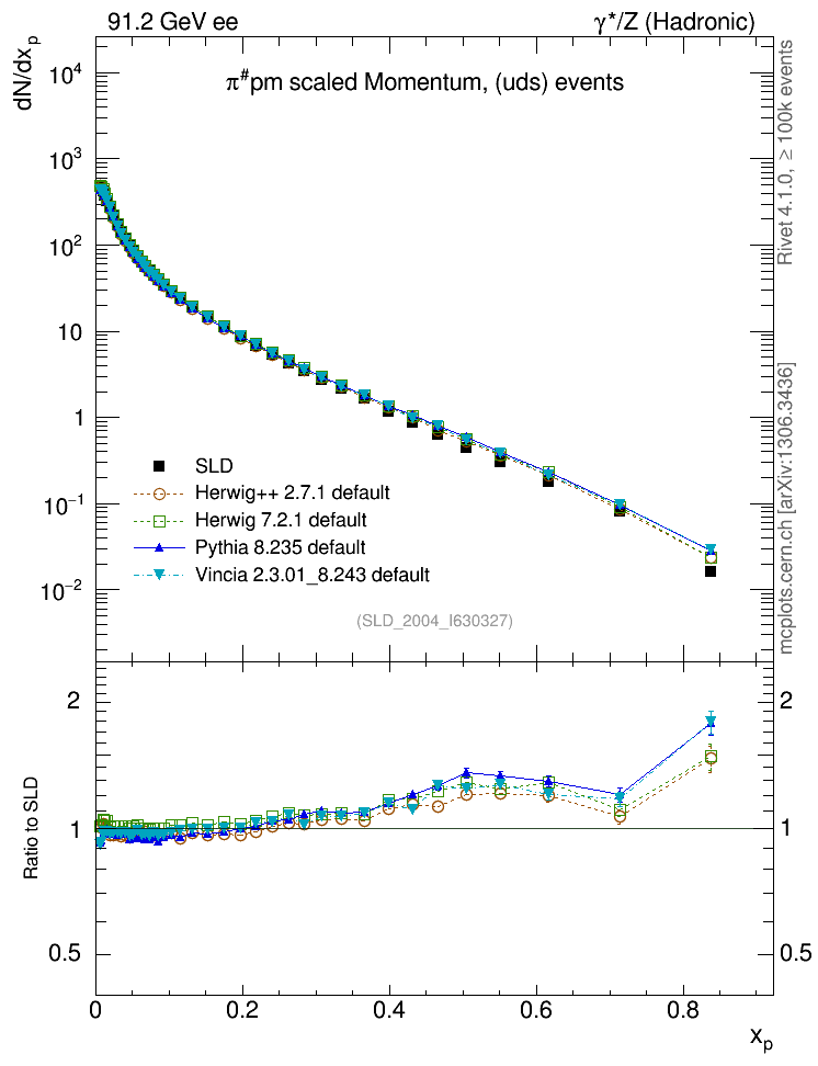 ee : γ*/Z (hadronic) : Identified Particles : π spectrum