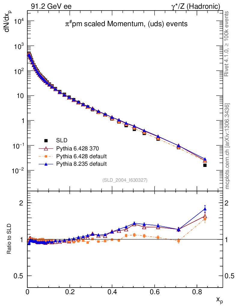ee : γ*/Z (hadronic) : Identified Particles : π spectrum