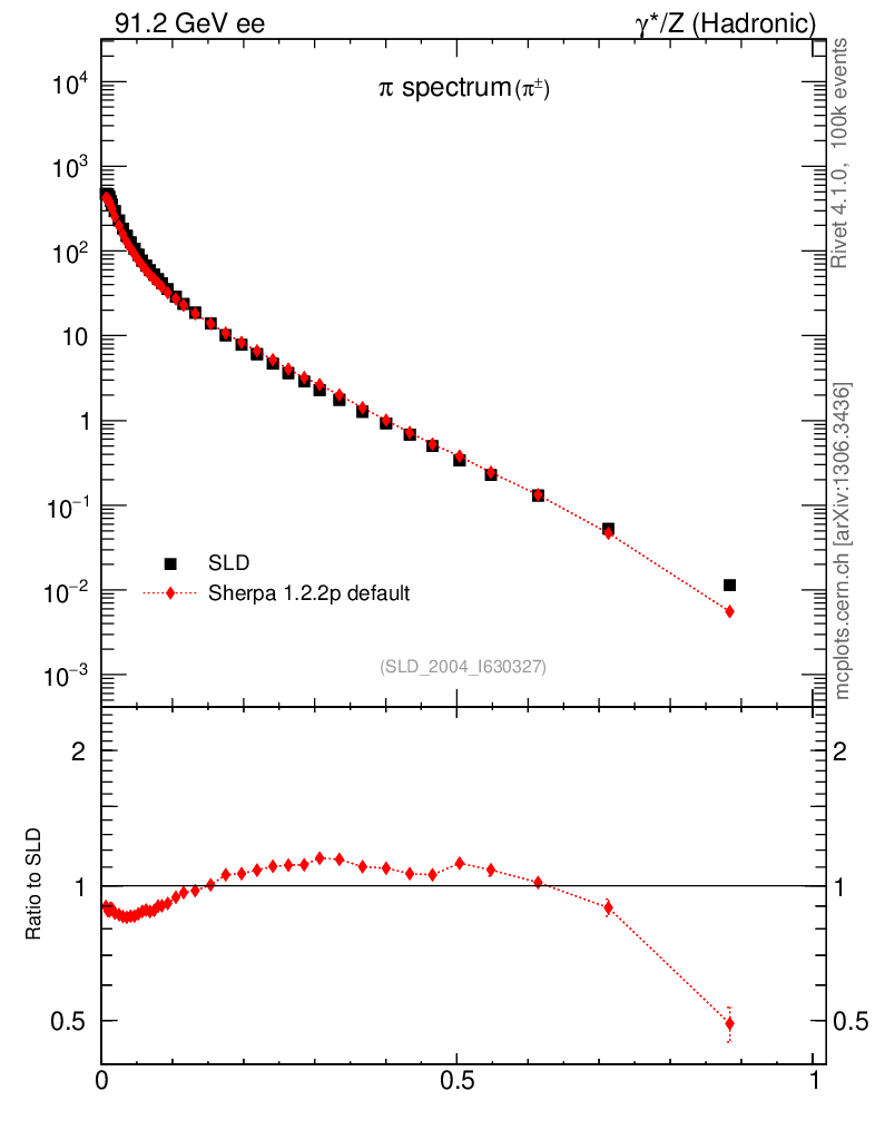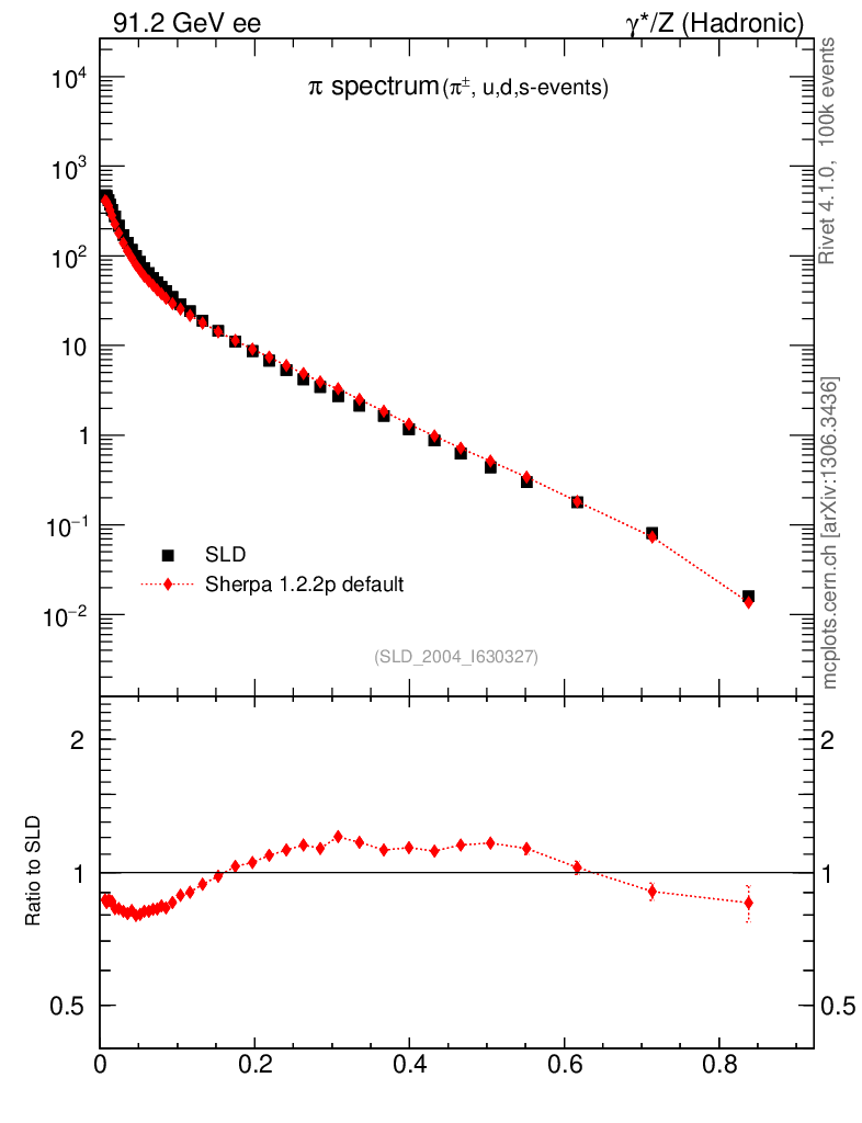 ee : γ*/Z (hadronic) : Identified Particles : π spectrum