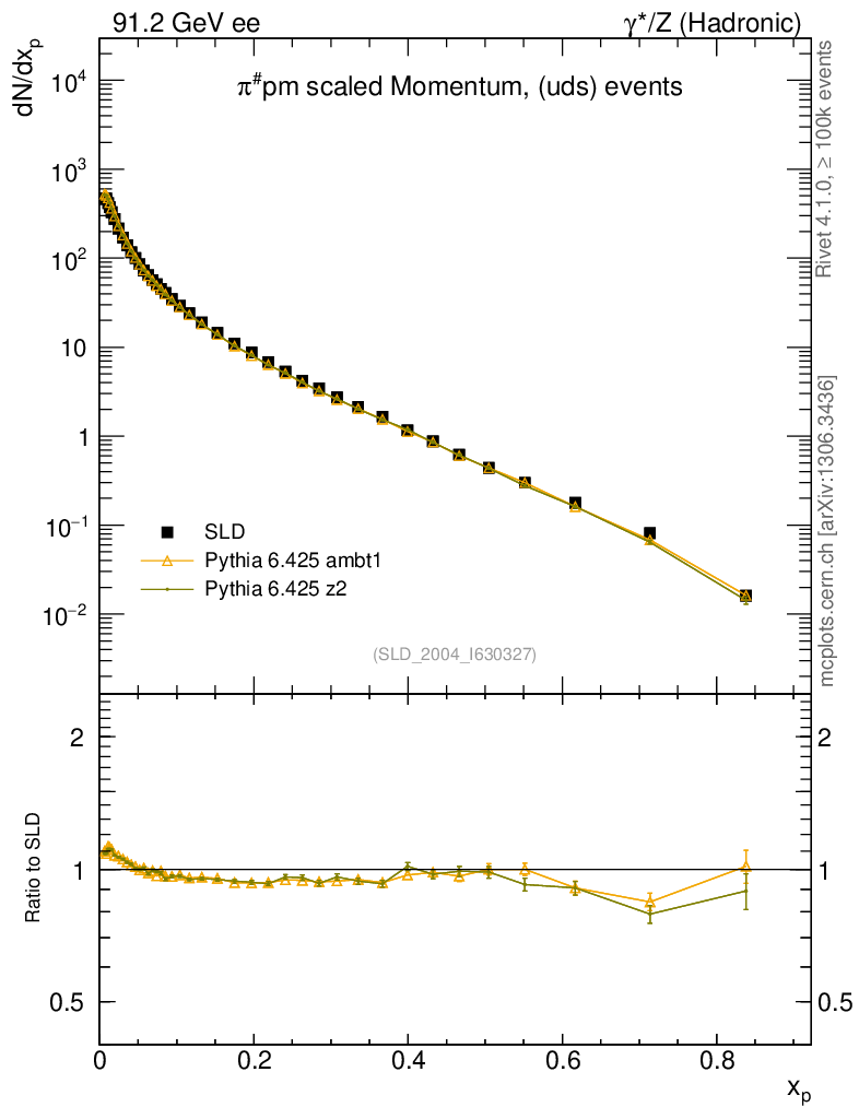 ee : γ*/Z (hadronic) : Identified Particles : π spectrum