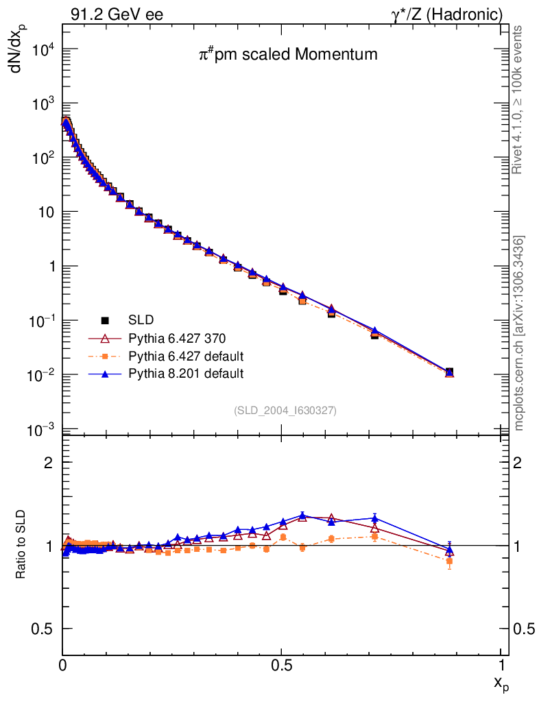 ee : γ*/Z (hadronic) : Identified Particles : π spectrum