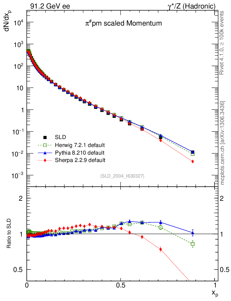 ee : γ*/Z (hadronic) : Identified Particles : π spectrum