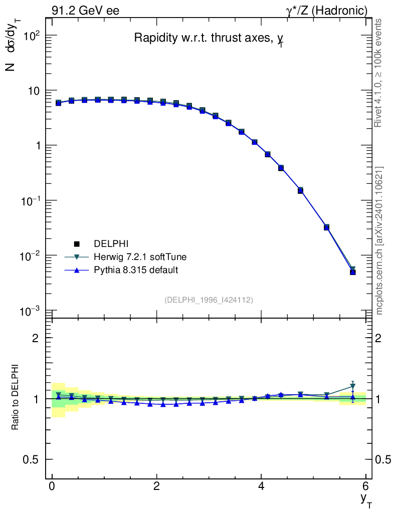 ee : γ*/Z (hadronic) : Charged Particles : Rapidity wrt Thrust axis